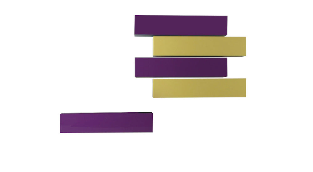 Mobilier Salon Mur Equipé 5 Meubles Suspendus 278x31x176cm TFT Boost Jaune et Violet