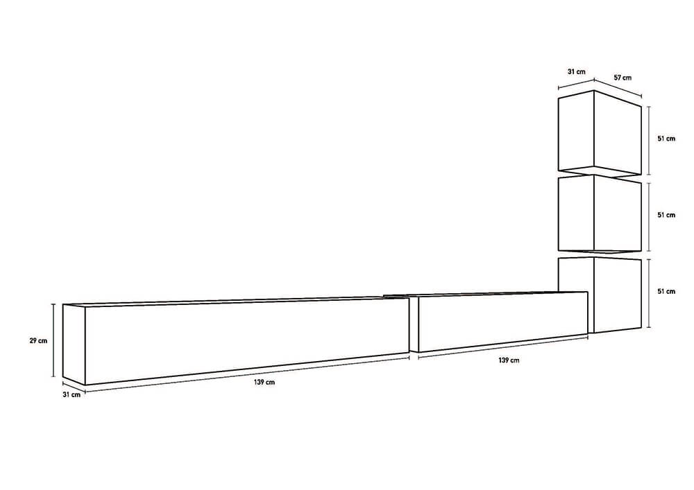 Meubles de salon muraux équipés de 6 meubles suspendus Les éléments individuels peuvent être positionnés dans une position différente de l'image en fonction de vos goûts Série TFT CubeCaractéristiques: