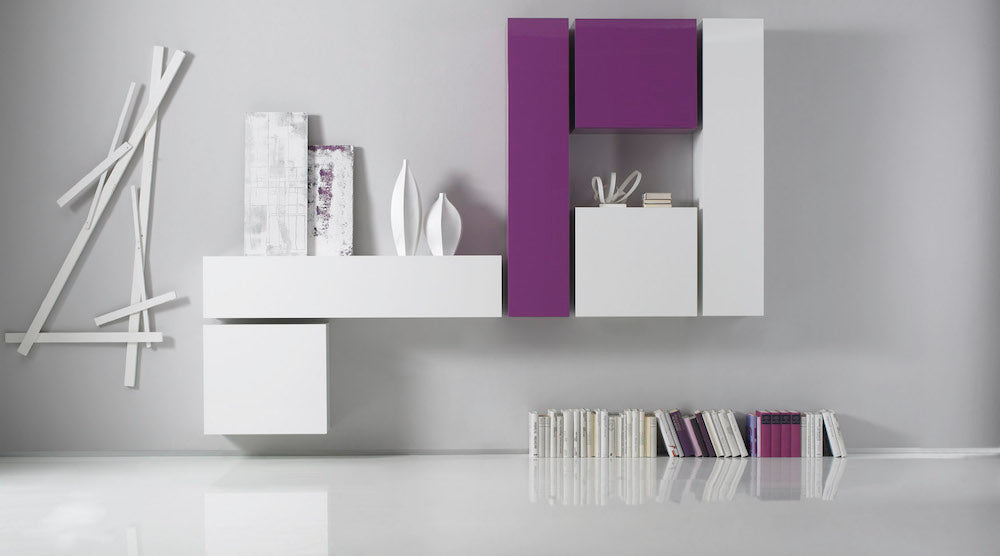 Ensemble de meubles de salon 6 meubles suspendus 255x31x190cm TFT Boost blanc et violet