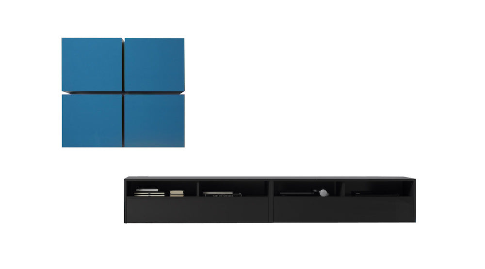 Meuble de salon mural équipé avec 4 meubles suspendus 2 meubles TV 335x41x176cm TFT Boost Anthracite et Bleu