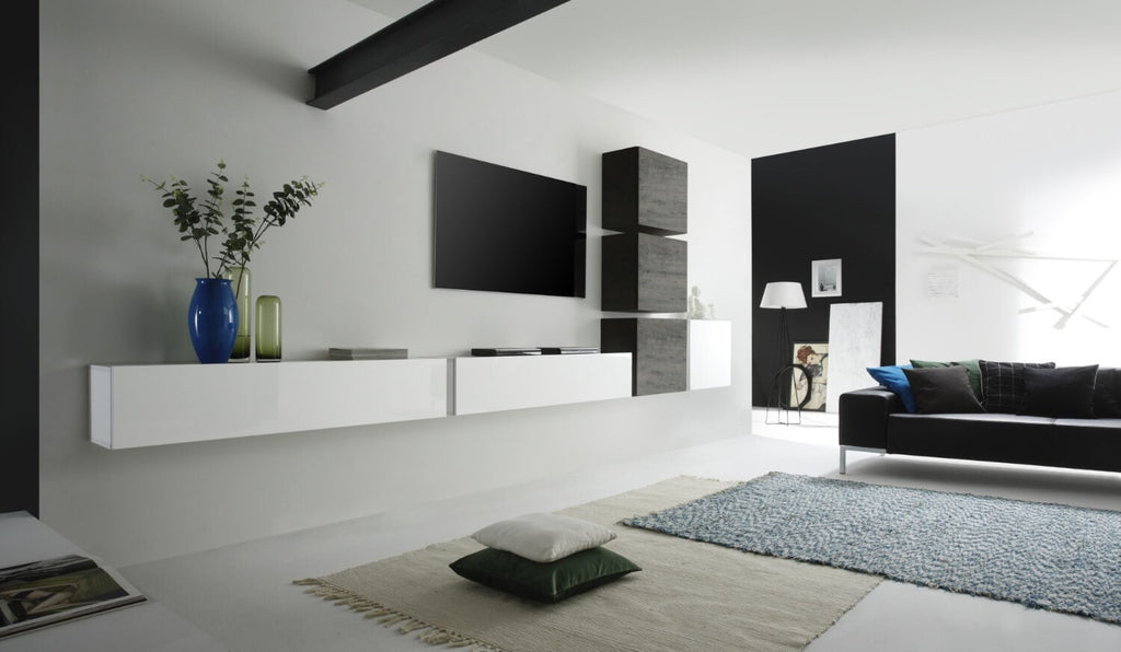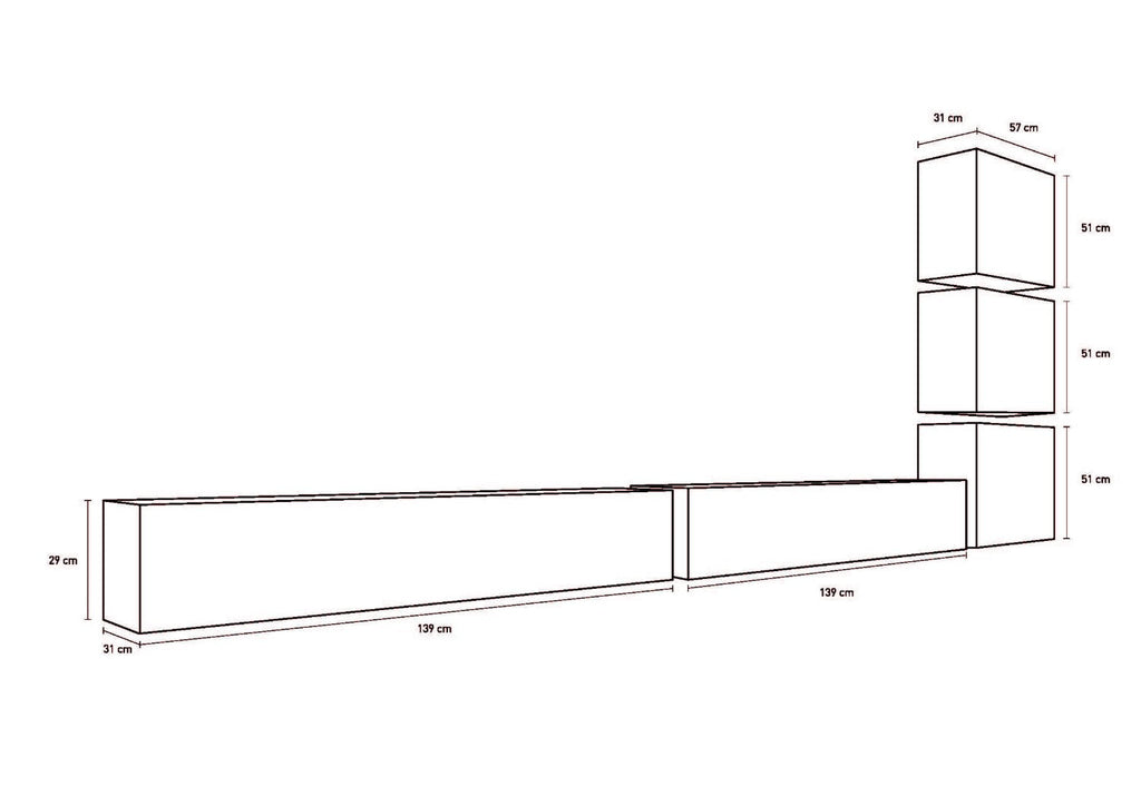 Ensemble Mural Meuble de Salon 6 Éléments Muraux en Mélamine Laquée 401x31x189cm TFT Cube Chêne Blanc