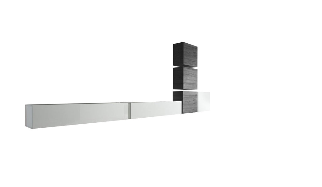 Mobilier de Salon Mural Equipé 6 Éléments Hauts en Mélaminé Laqué 401x31x189cm TFT Cube Chêne Blanc