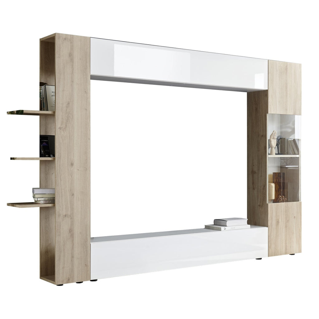 Rangement Meuble de Salon Mural Meuble TV Bibliothèque Murale et Meuble Colonne TFT Akira 2 Blanc et Chêne