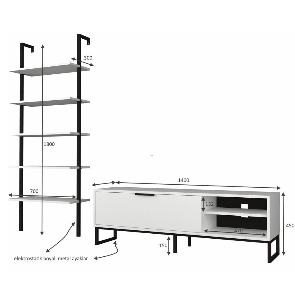 Simple et moderne, le système mural Way se compose d'un meuble TV blanc avec une porte pliante et un compartiment ouvert ainsi que d'une bibliothèque contemporaine à 5 étagères. La couleur blanche et les détails en fonte le rendent facilement combinable avec n'importe quel environnement.