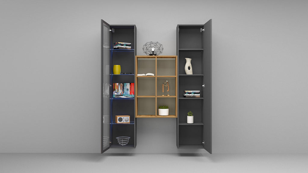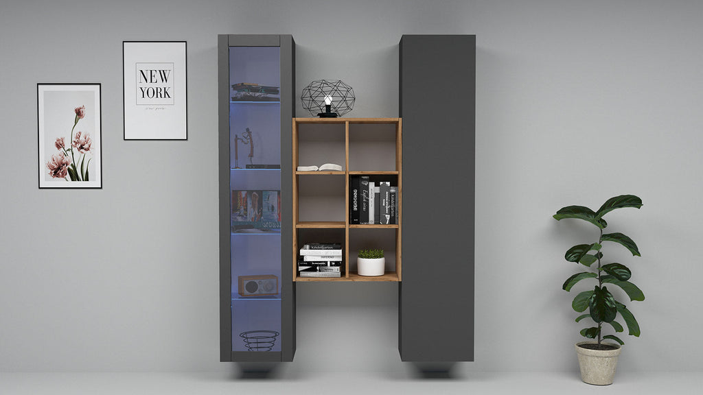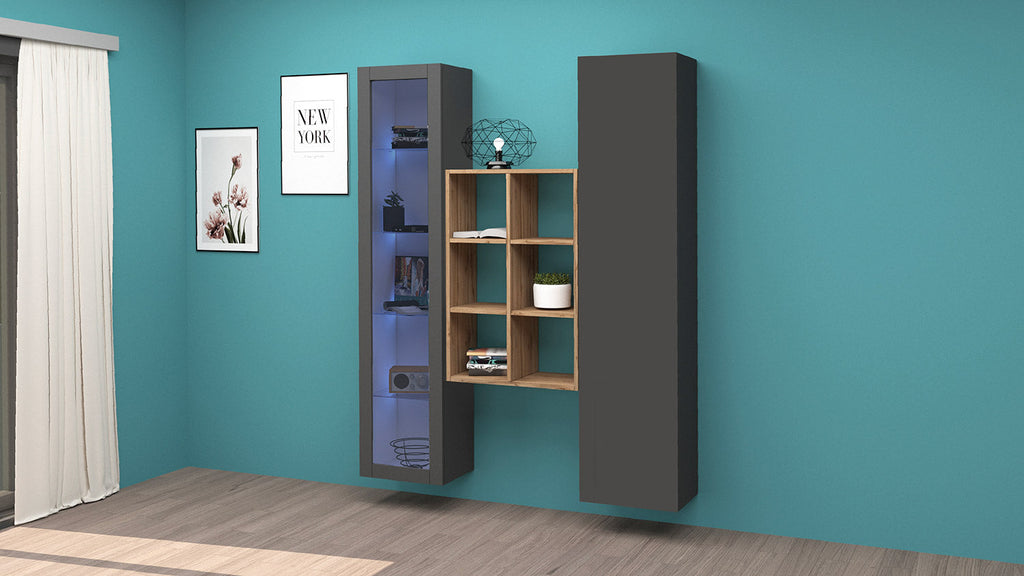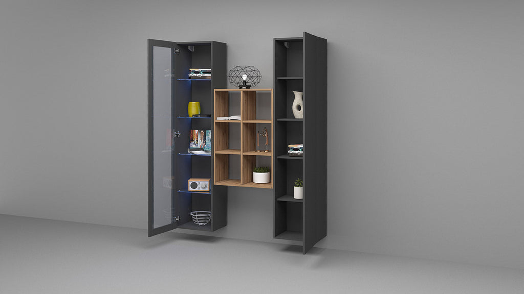 Parete Attrezzata Soggiorno 140x30x180 cm Maruska n°16 Grigio Antracite Opaco