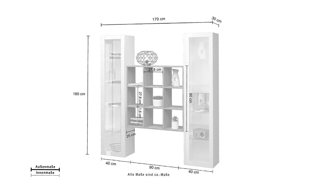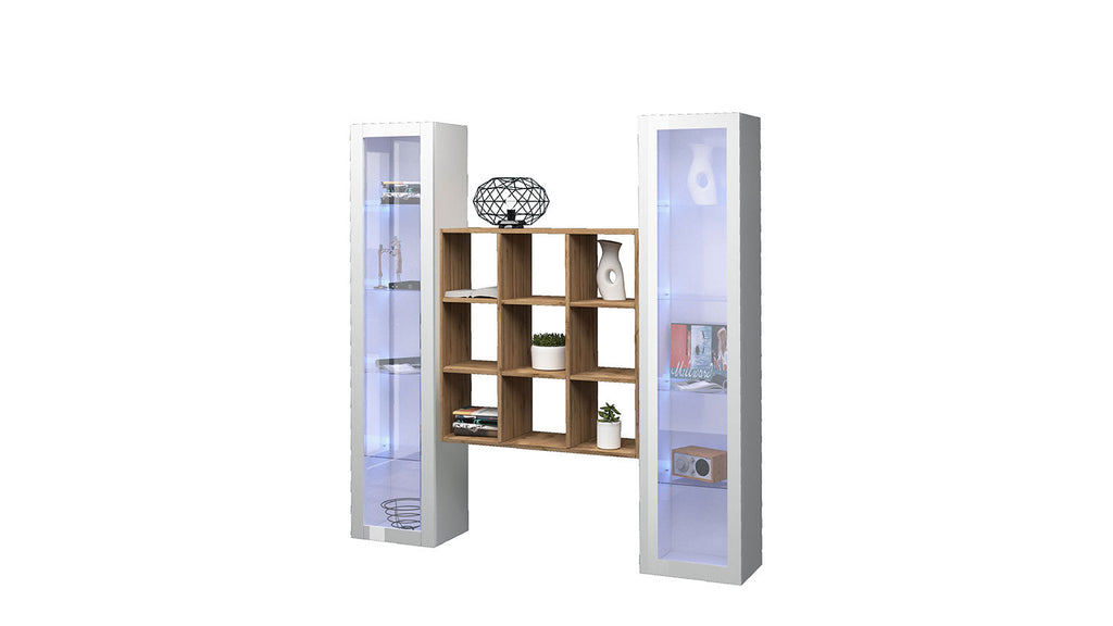 Parete Attrezzata Soggiorno 170x30x180 cm Maruska n°28 Bianco Lucido/Rovere Wotan
