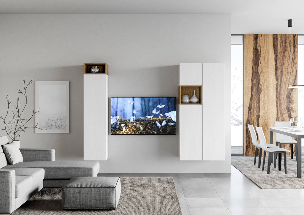 Le pareti attrezzate Isoka sono la soluzione perfetta per collocare i tuoi libri, soprammobili e oggetti nella zona giorno.