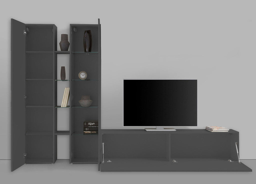 Parete Attrezzata Soggiorno 280x30x180 cm Maruska n°9 Grigio Antracite Opaco