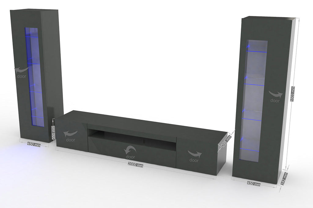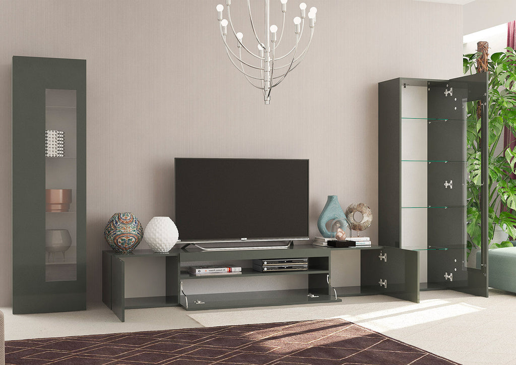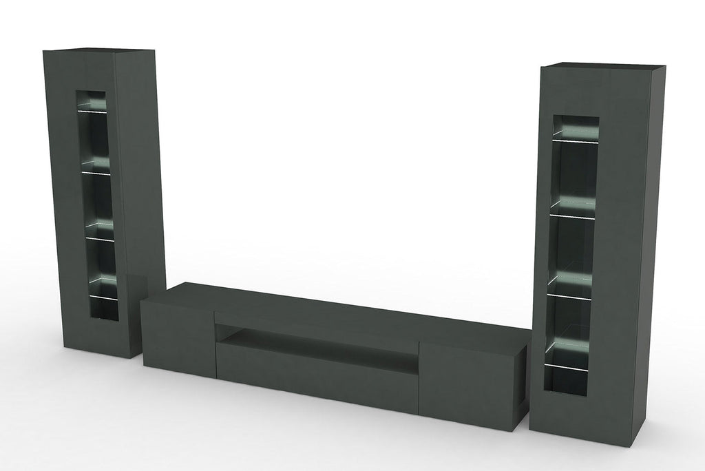 Parete Attrezzata Soggiorno 290x162x40 cm Daiquiri Antracite Lucido