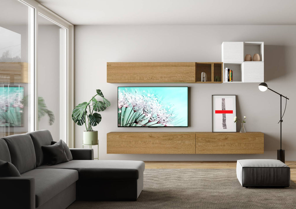 La parete attrezzata Isoka A36 ha un design sfizioso e di effetto, l'aspetto ideale per la parete in cui collocare la TV.