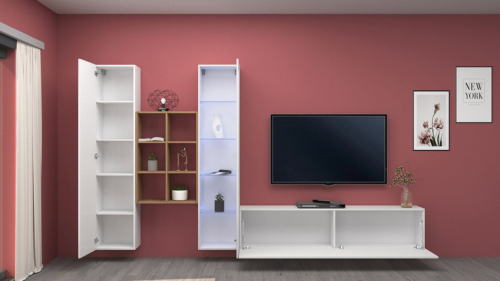 Parete Attrezzata Soggiorno 320x30x180 cm Maruska n°15 Bianco Lucido