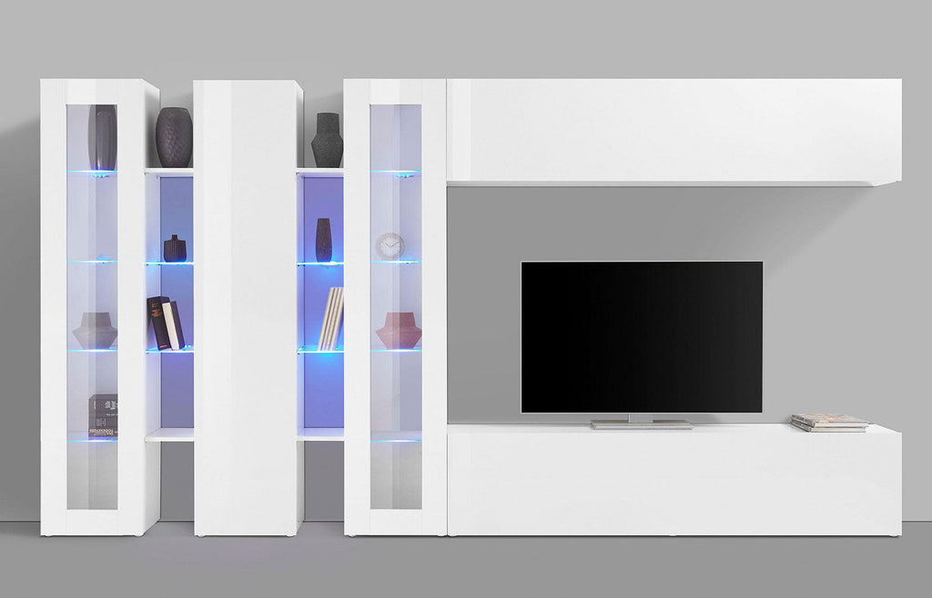 Parete Attrezzata Soggiorno 340x30x180 cm Maruska n°6 Bianco Lucido
