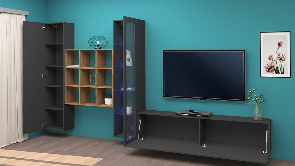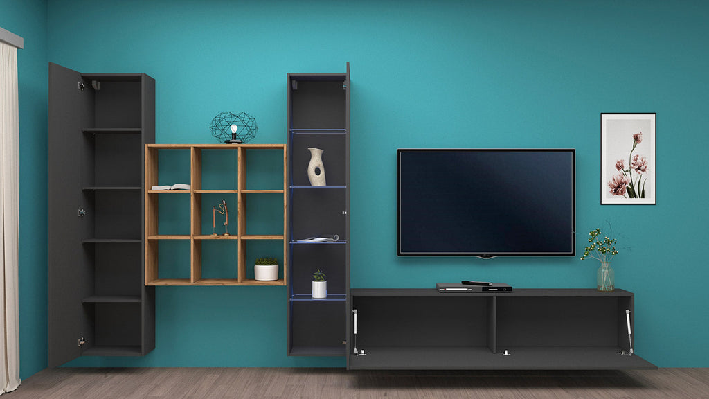 Parete Attrezzata Soggiorno 350x30x180 cm Maruska n°24 Grigio Antracite Opaco