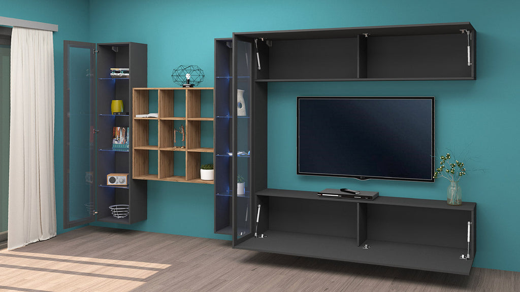 Parete Attrezzata Soggiorno 350x30x180 cm Maruska n°26 Grigio Antracite Opaco