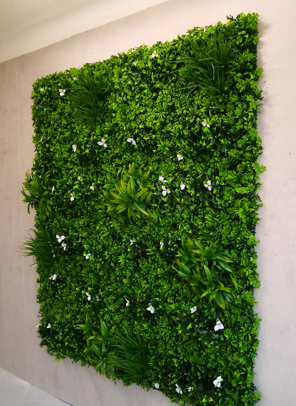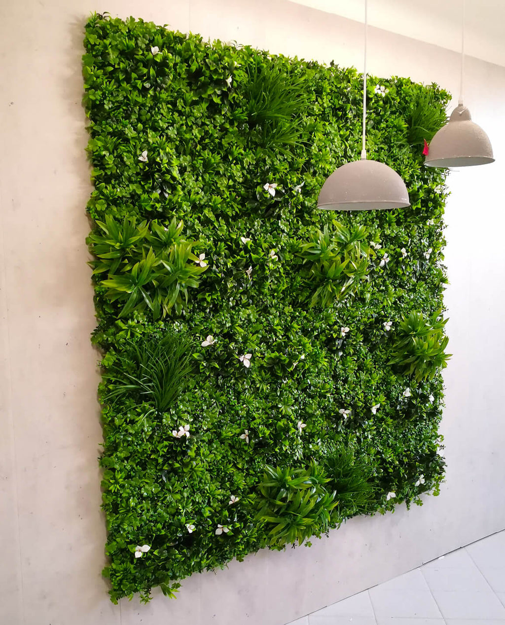 Le panneau Artificial Green est excellent pour être appliqué sur des colonnes, des murs ou des plafonds, de manière à donner l'impression d'être presque à l'extérieur. La composition est simple pour s'adapter à n'importe quel environnement, intime et familier ou moderne et chic. Il est équipé de clips de fixation rapides et invisibles pour faciliter le montage, mais aussi pour pouvoir créer diverses combinaisons afin de rendre votre lieu le plus unique possible. Les matériaux qui le composent en font un panneau parfait pour un usage intérieur mais aussi extérieur, capable de résister aux intempéries et aux rayons UV.