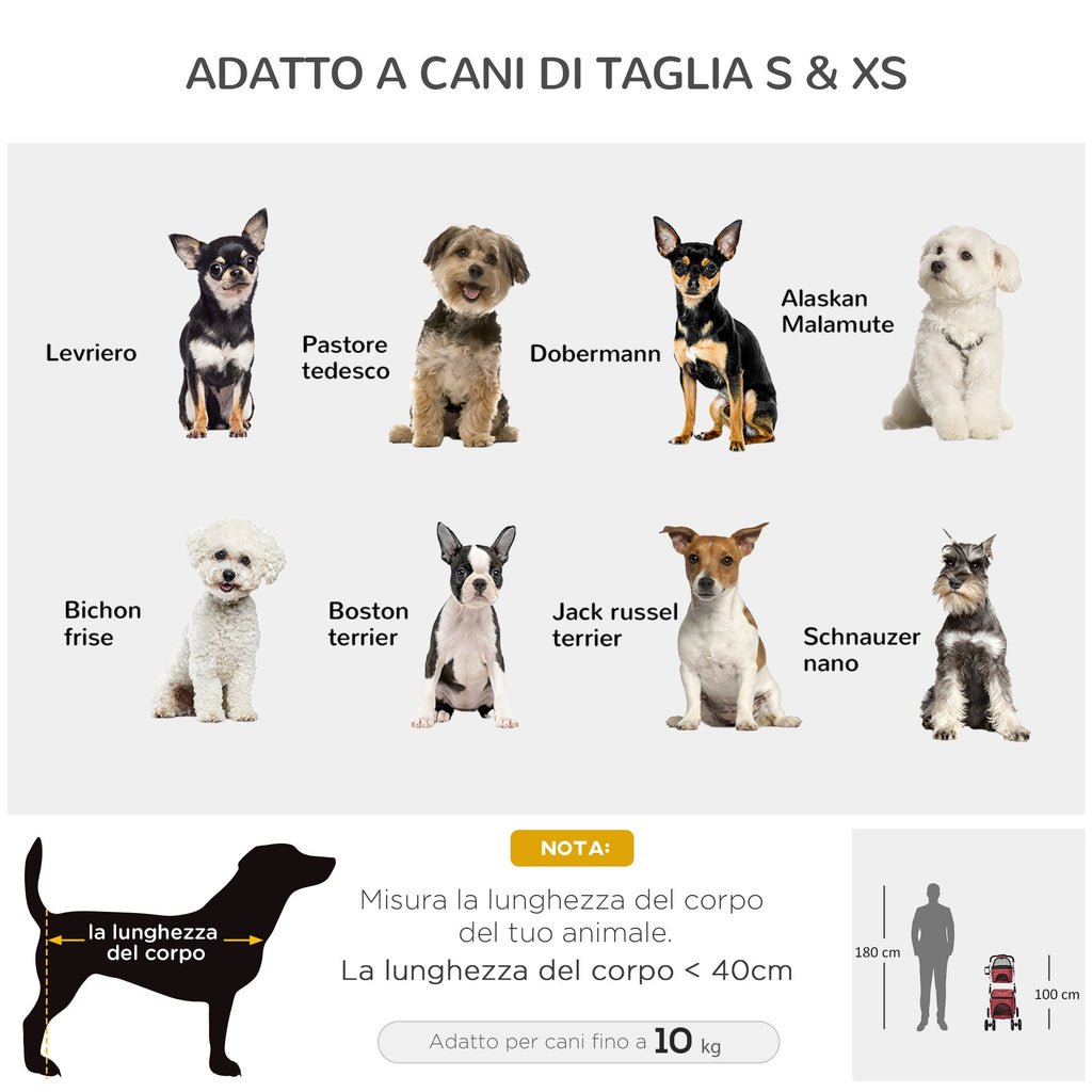 Poussette double pliante pour chiens et chats 82x48x100 cm en métal et tissu Oxford rouge