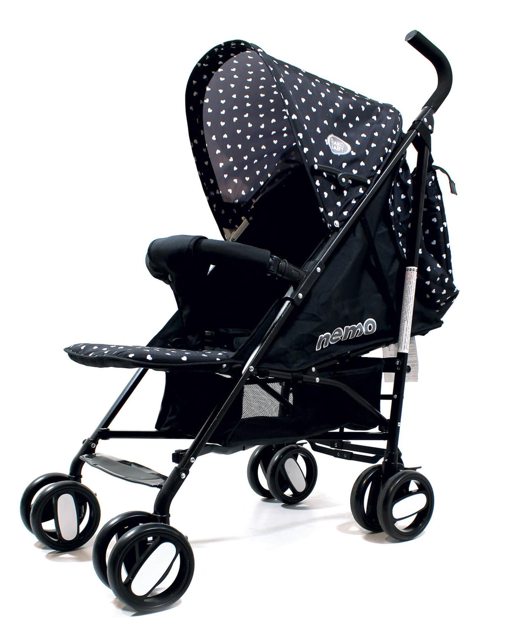 Poussette pliante légère pour enfants avec sac Nemo noir avec coeurs