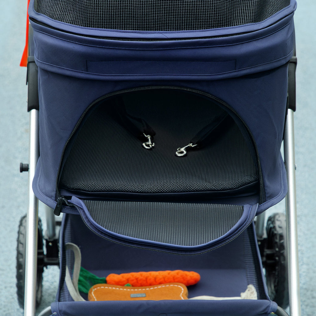 Passeggino per Cani 3 in 1 Pieghevole con Cestino Inferiore Blu