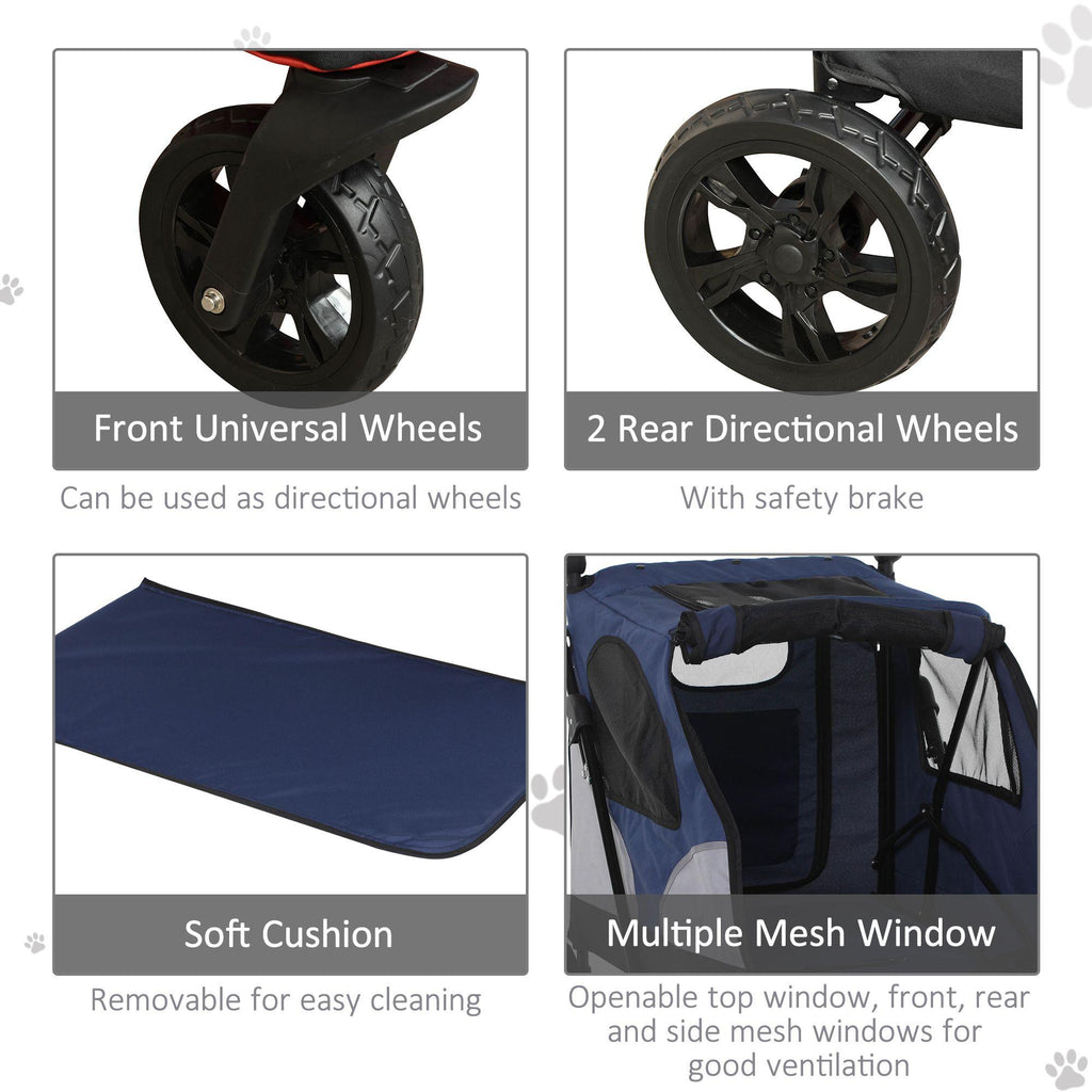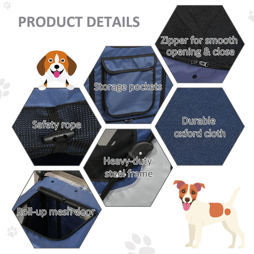 Poussette pour chiens de petite et moyenne taille 104,5x68,5x110 cm en acier et tissu Oxford gris et bleu