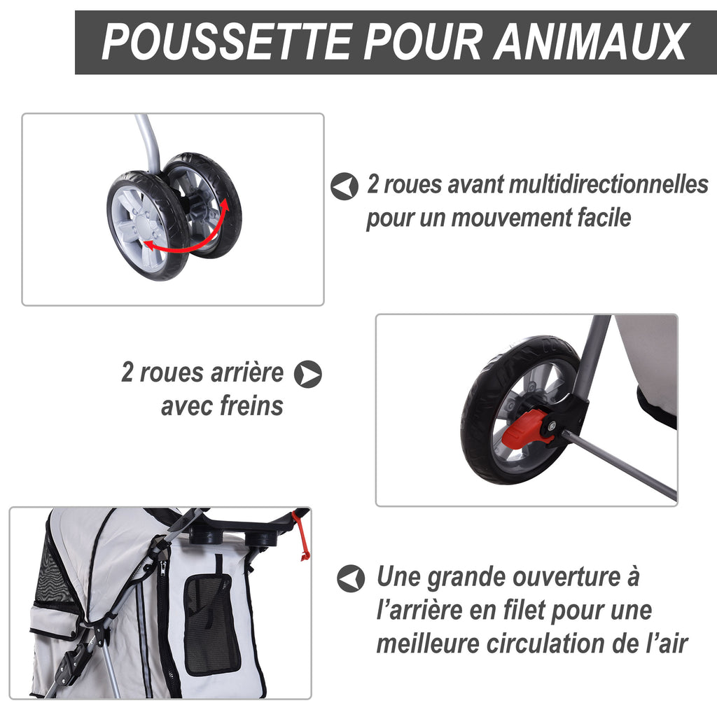 Chariot pour animaux de compagnie composé de tubes d'acier et de tissu oxford, il est idéal pour marcher avec vos animaux de compagnie. Apportez commodité et commodité à votre vie quotidienne.