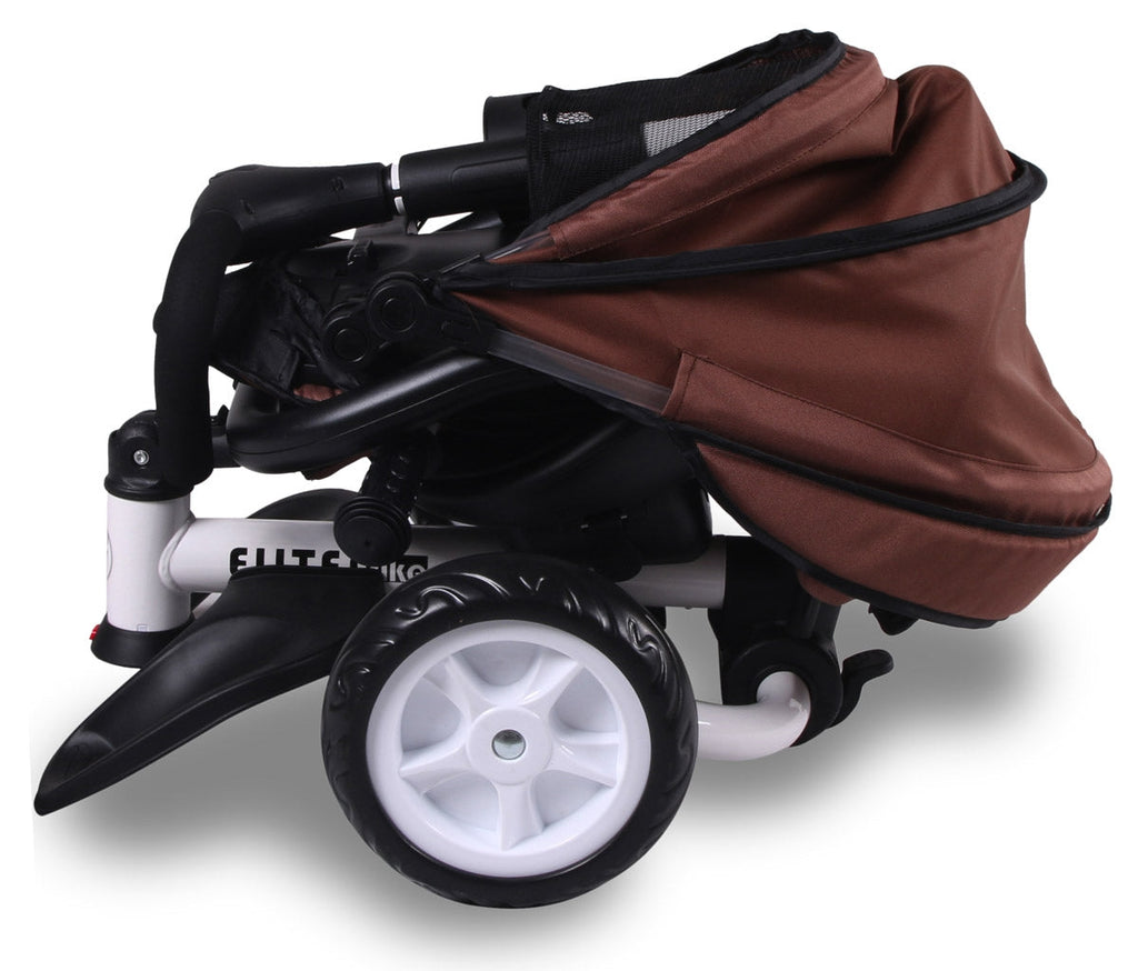 Poussette tricycle pliable Kid Smile Elite marron avec siège pivotant à 360°