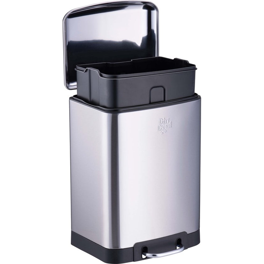 Non lasciare semplicemente i rifiuti in giro, ma gettali in questa spaziosa pattumiera a pedale Dirt Devil con una capacità di 12 litri..