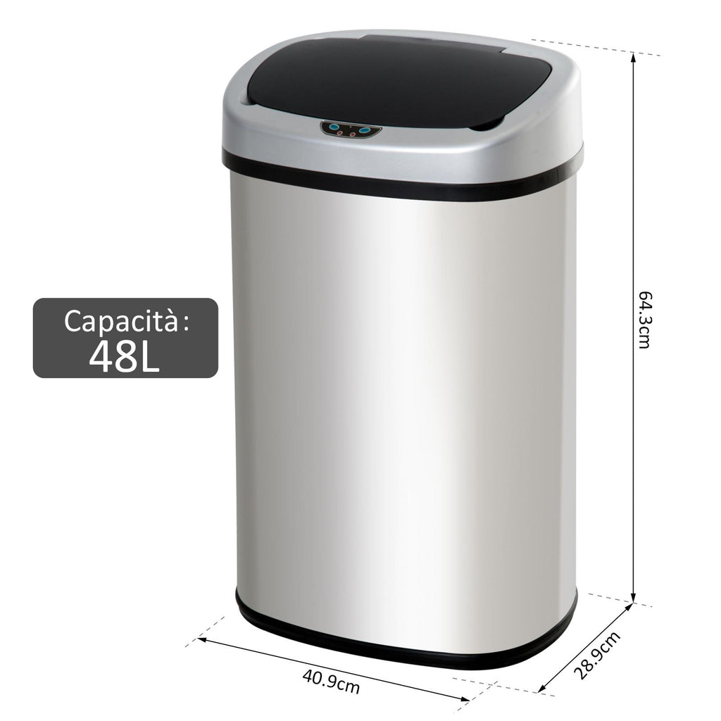 Poubelle à ouverture automatique en acier inoxydable avec capteur 48 litres