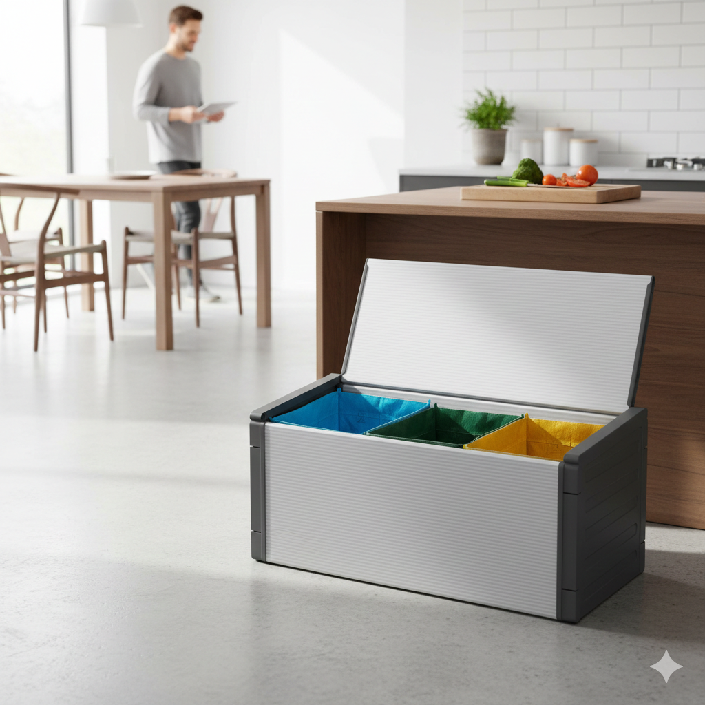 - Incluso: kit di montaggio cassapanca senza viti con istruzioni illustrate e 3 borse per la raccolta differenziat