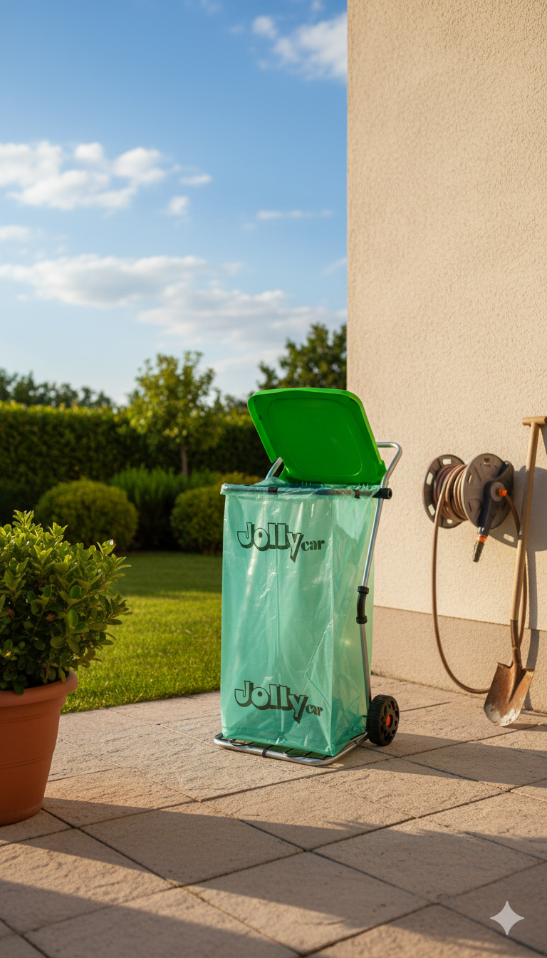 Chariot porte-sacs avec structure en acier peint à la poudre de polyester, équipé d'un couvercle en polypropylène : indispensable dans le jardin pour ramasser les feuilles et les déchets, il est également utile pour un usage domestique. La hauteur du cadre porte-sac est réglable grâce aux broches coulissantes spéciales. un sac poubelle et des clips pour le fixer au cadre sont inclus dans l'emballage. Les roues vous permettent de déplacer facilement le chariot là où vous en avez le plus besoin. Montage simple et rapide, sans utilisation d'outils.