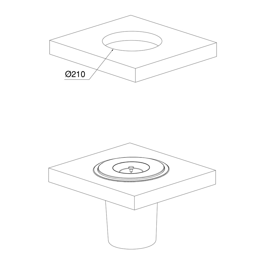 Il a une capacité totale de 6 litres et nécessite un espace interne minimum de 270 mm, la hauteur du conteneur est de 265 mm. Pour son installation, un usinage de diamètre 210 mm est nécessaire.