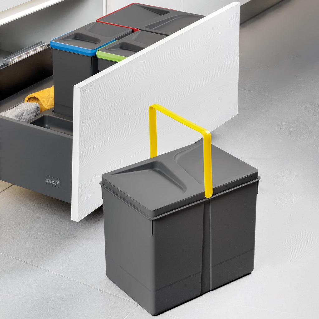 Poubelle séparée 2 bacs pour commode 31,2x21,6 cm H26,6 cm Emuca Gris anthracite