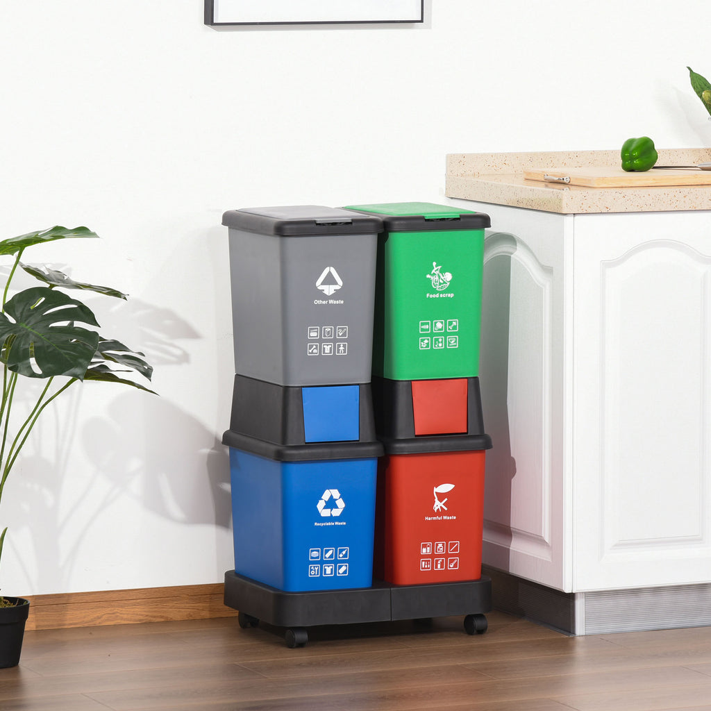 La poubelle à 2 niveaux est composée de 4 seaux de couleurs différentes. D'un design compact et fonctionnel, l'ensemble de bacs de recyclage est spacieux et, grâce aux roulettes à la base, facile à déplacer là où vous en avez besoin.