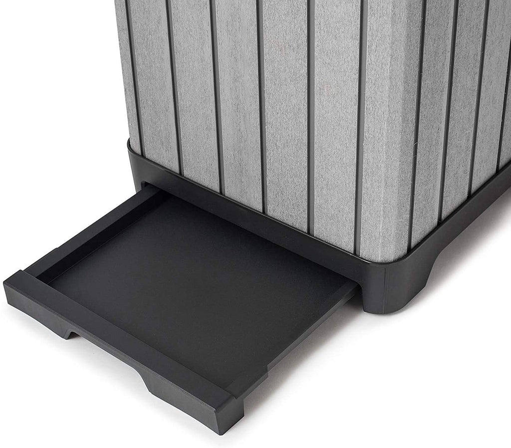 Innovante et pratique, la poubelle extérieure constitue une solution idéale pour garder les déchets hors de vue, avec style. Il présente un design à double couvercle qui cache le sac poubelle, un tiroir dédié pour le liquide et une jolie texture brossée, qui allie parfaitement fonctionnalité et style. Fabriqué à partir de DUOTECH, un matériau révolutionnaire solide, durable et résistant aux intempéries, l'unité est protégée contre les UV et facile à entretenir, ce qui la rend idéale pour votre espace extérieur préféré. Un mécanisme d'ouverture à double couvercle cache le sac poubelle disgracieux, laissant l'unité attrayante fièrement exposée.