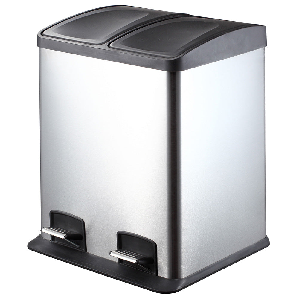 Poubelle en acier pour la collecte sélective des déchets 2 paniers à ouverture par pédale