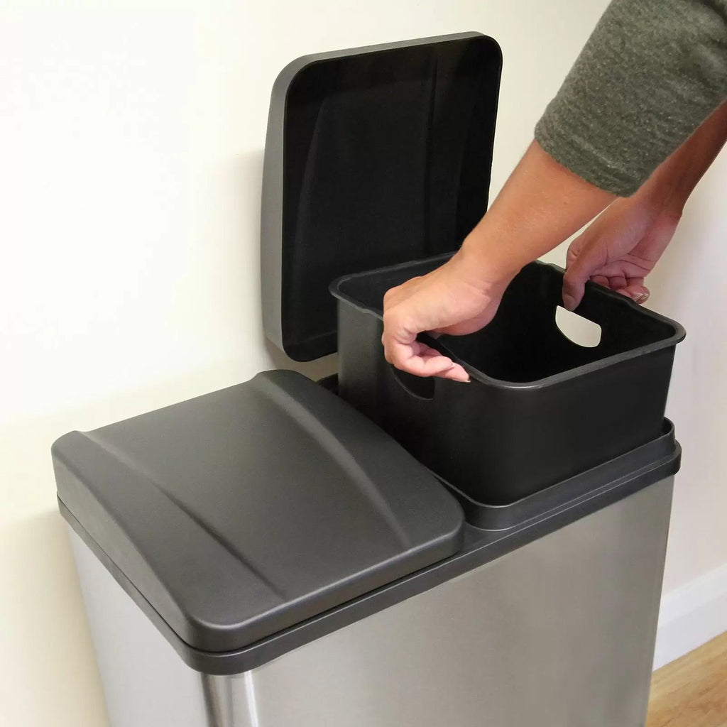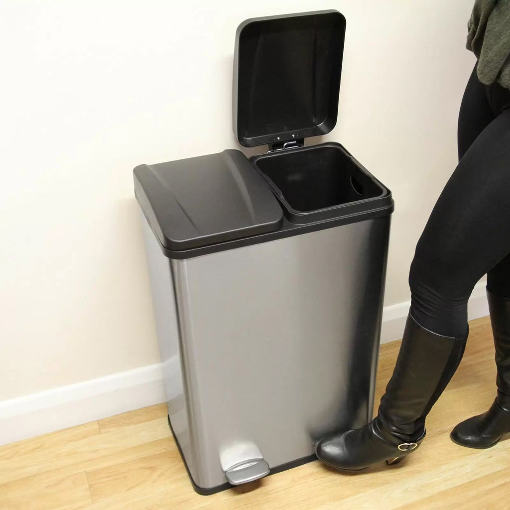 Recyclez facilement les déchets avec cette poubelle à deux compartiments de 30 L chacun, il y a beaucoup d'espace pour les déchets mélangés et le recyclage.