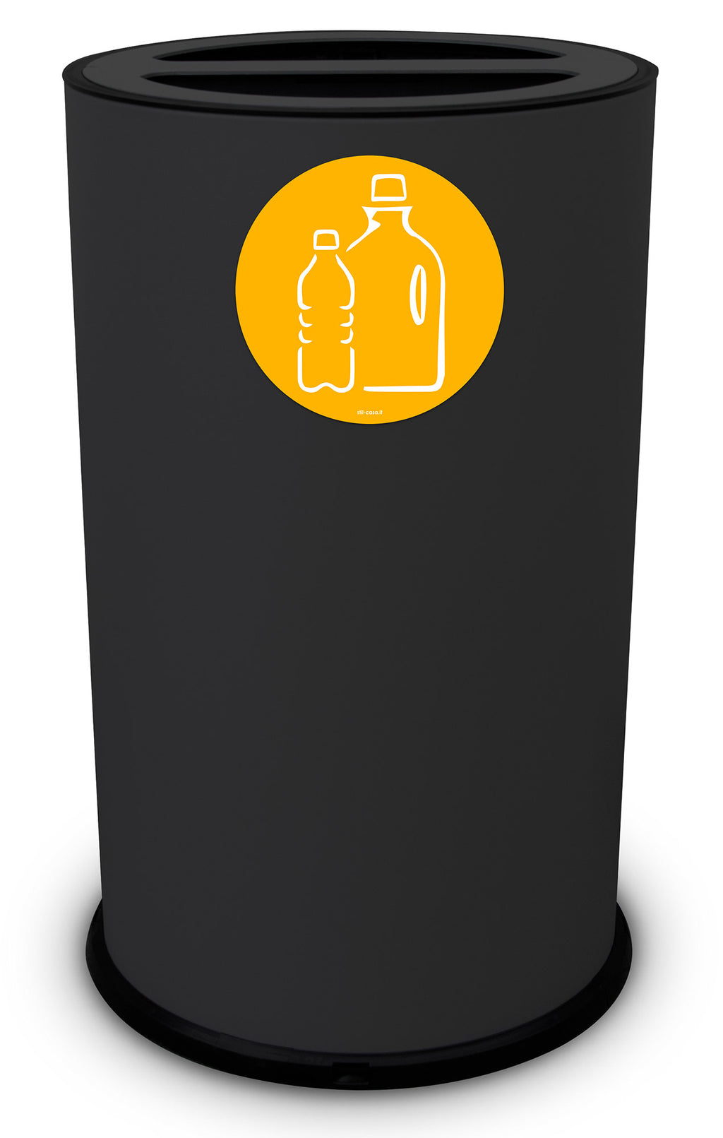 Elegante e funzionale contenitore per raccolta rifiuti, cover a due scomparti, realizzato totalmente in acciaio verniciato nero con vernici termoindurenti. Inserimento sacchetto tramite pratici reggisacchi interno con svuotamento dall'alto. Kit pittogrammi magnetici incluso, facili da apporre e rimuovere per permettere una corretta pulizia del prodotto. Fondo in metallo con bordino salva pavimento