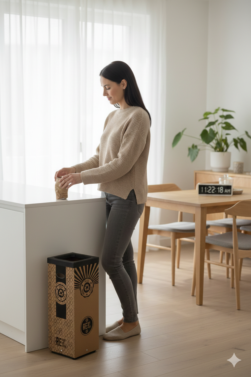 Pattumiera Per Raccolta Rifiuti 28x28xh70 cm in Cartone Con Stampa Grafica Rifiuto Misto Beige