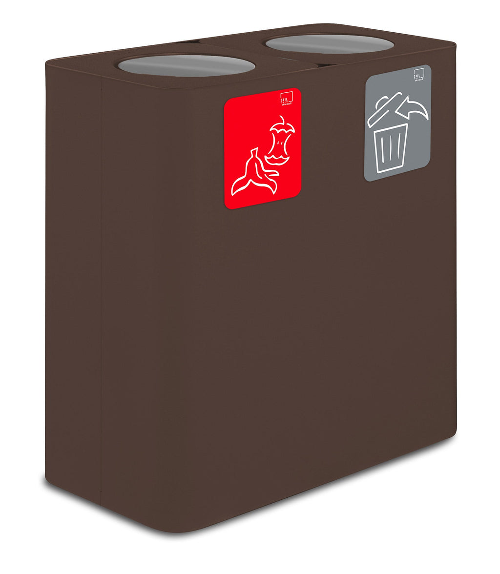 Elegante e funzionale sistema di raccolta rifiuti, realizzato totalmente in acciaio. Cover con coperchio basculante. Inserimento sacchetto tramite anello perimetrale in tecnopolimero con funzione blocca sacco e tondino zincato ad incastro. Svuotamento sacchetto dall'alto. Kit di 5 pittogrammi magnetici per divisione rifiuti inclusi. Piedini salva pavimento inferiori in tecnopolimero