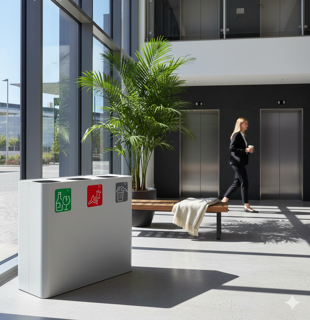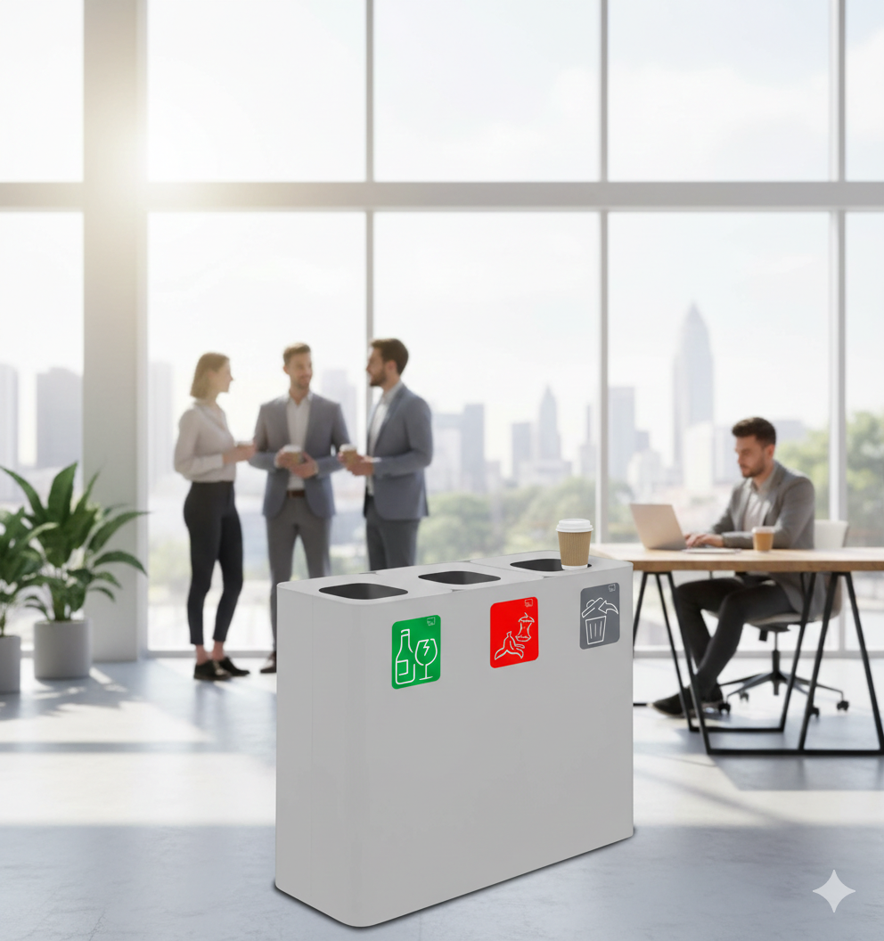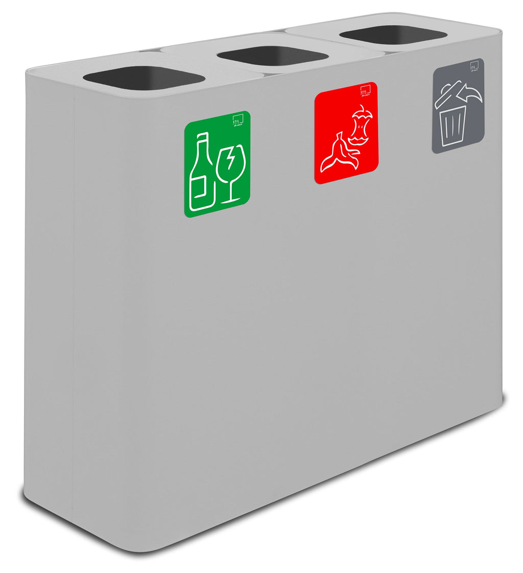 Pattumiera Sistema di Raccolta Rifiuti 90x30xh80 cm In Acciaio Verniciato 3 Scomparti Bianco