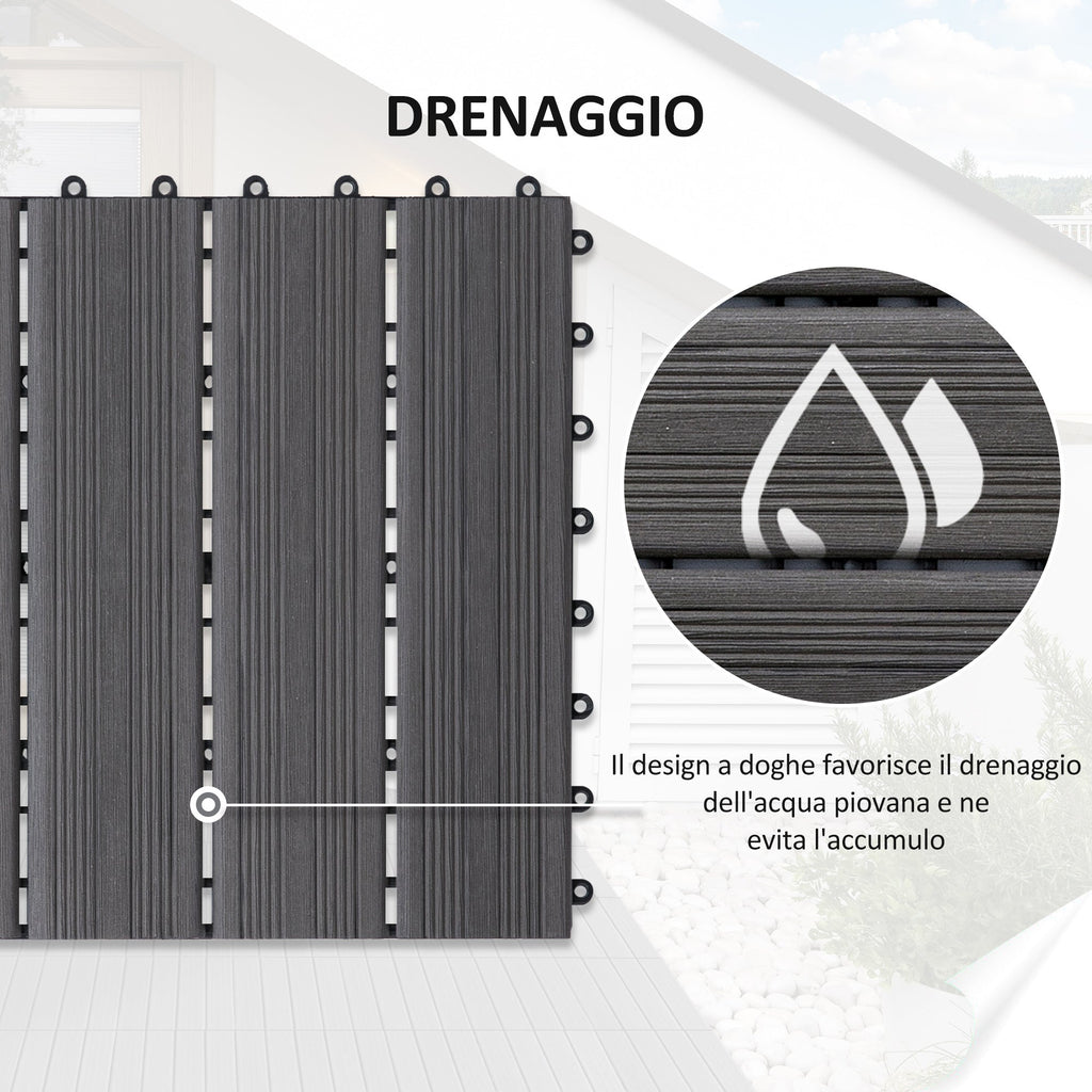 Sol d'extérieur à emboîtement 11 dalles 30x30x2,2 cm Gris