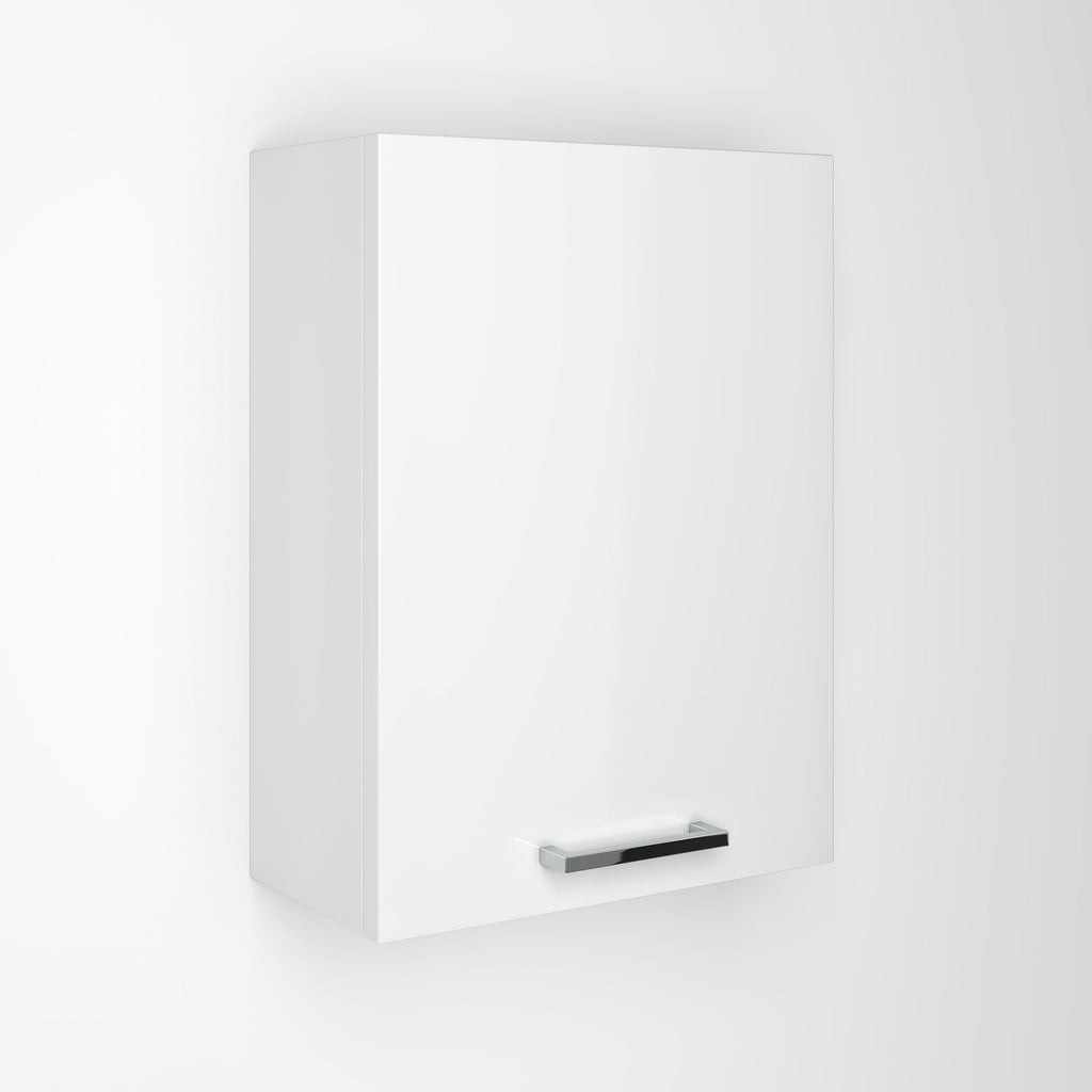 Meuble Mural Salle de Bain 1 Porte Push 35x18x47,5 cm en Bois Samoa TFT Blanc Brillant