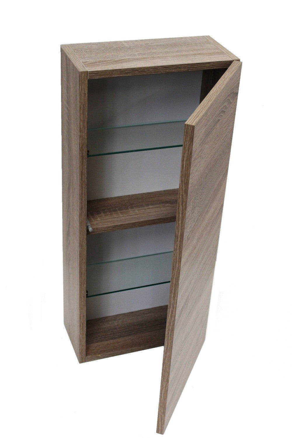 Meuble Mural de Salle de Bain 1 Porte Poussable 35x18x78,2 cm en TFT Ibiza Bois Tabac Clair