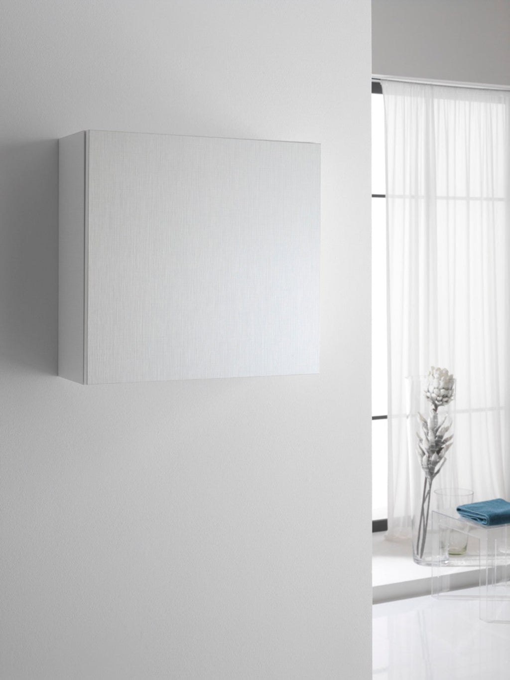 Meuble Mural de Salle de Bain 1 Porte Poussable 50x18x47,5 cm en TFT Bali Twist Bois Blanc