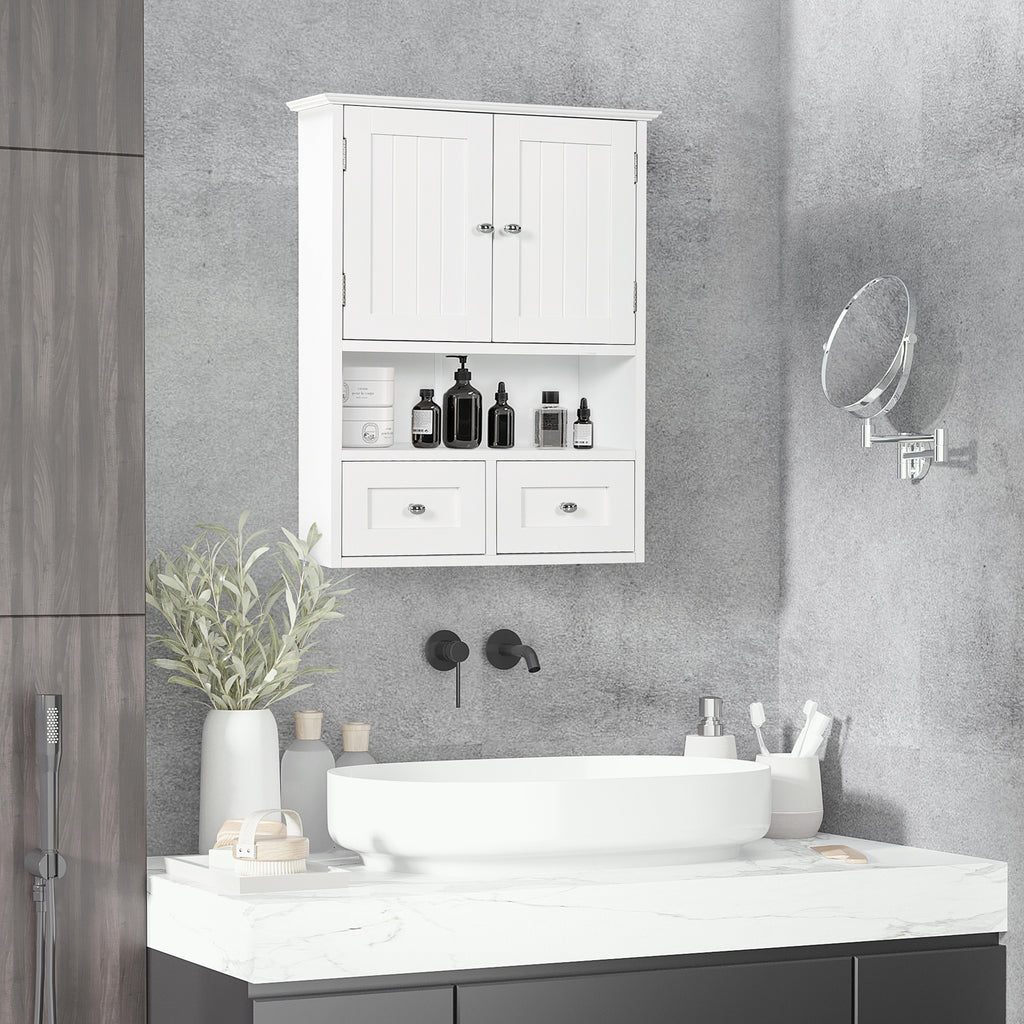 Il design dell'armadietto a parete consente di risparmiare spazio a terra. Mobiletto bagno con 2 ante, ripiano aperto e 2 cassetti per riporre i tuoi prodotti quotidiani. Design con chiusura a magnete per chiudere facilmente le ante. Pensile bagno realizzato in MDF per una struttura robusta. Montaggio richiesto.