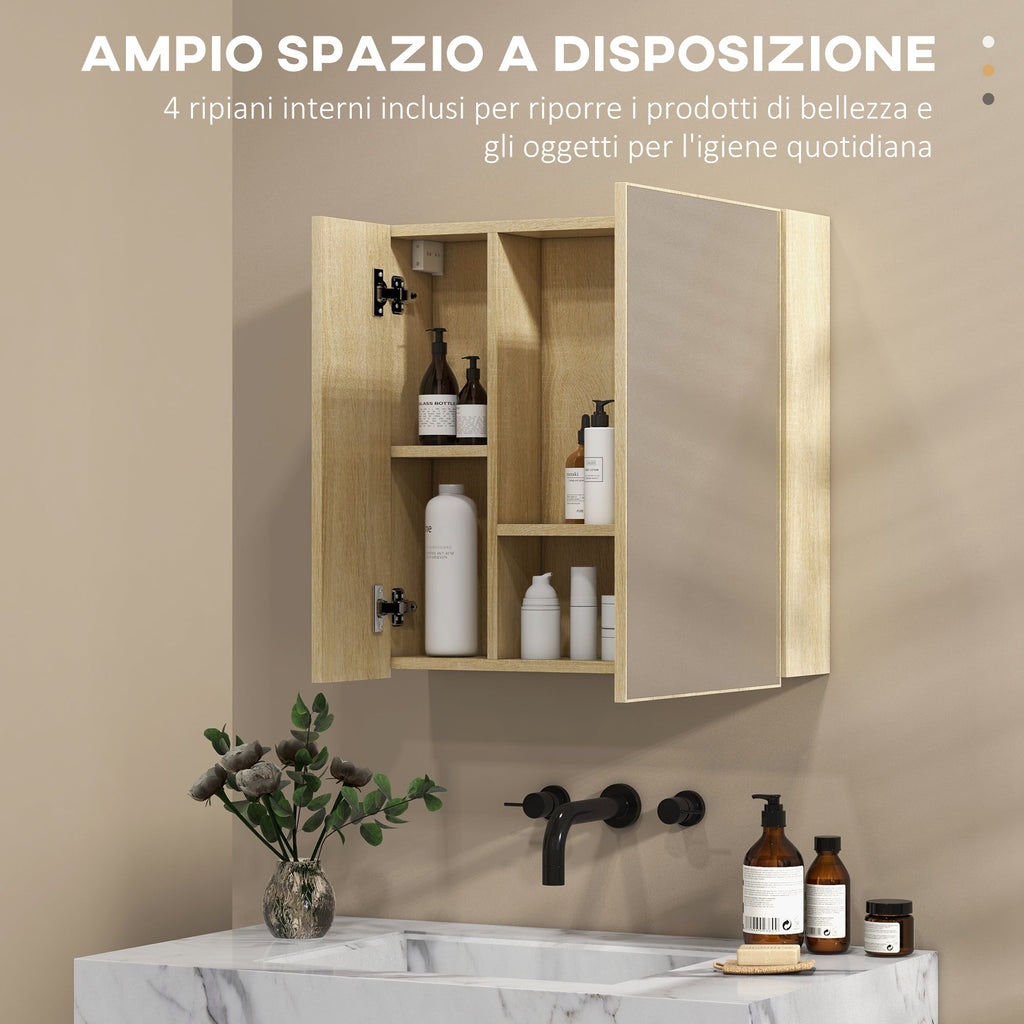 Pensile da Bagno con Specchio 60x15x60 cm in Truciolato Legno Naturale