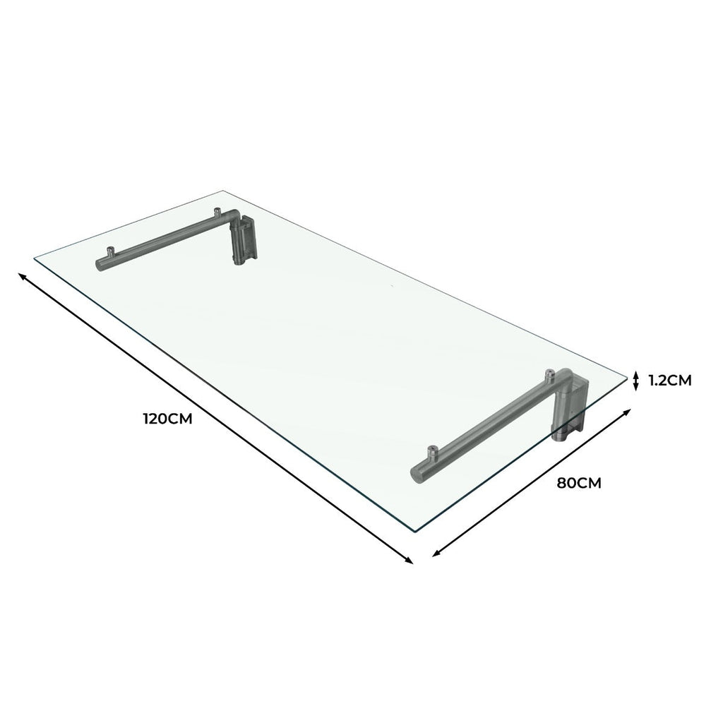 Pensilina Tettoia 120x80x0,8 cm in Vetro con Staffe in Acciaio