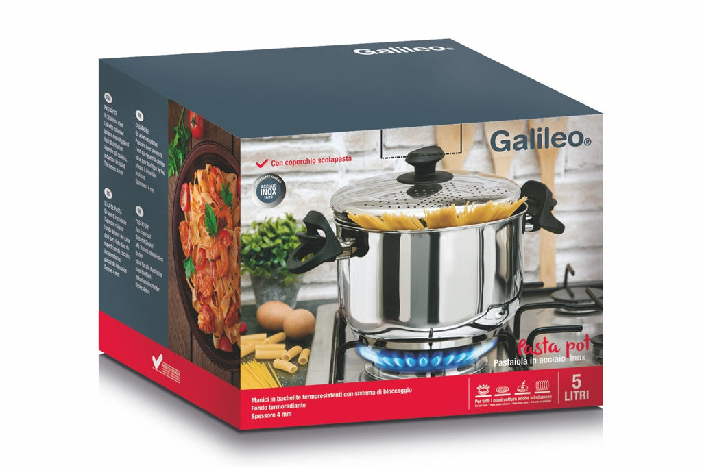 Le pot à pâtes se caractérise par un couvercle à micro-trous et deux poignées en bakélite autobloquantes qui faciliteront enfin la phase d'égouttage de l'eau.