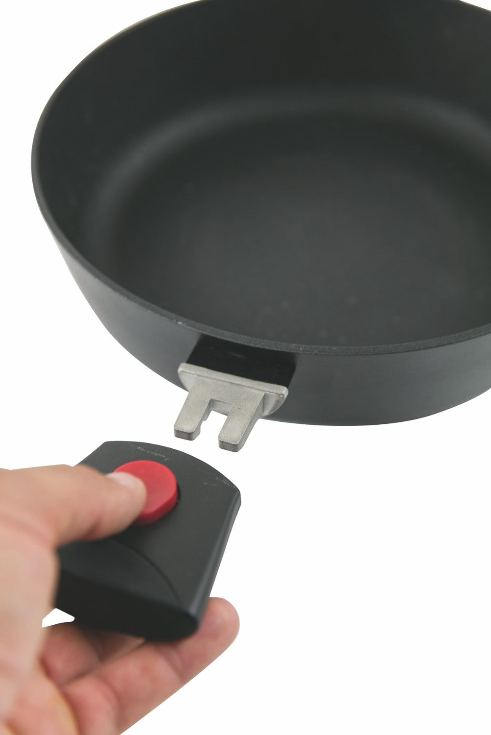 Vous pourrez passer de la plaque de cuisson au four en toute simplicité puis retirer la poignée grâce au petit bouton positionné sur la poignée.