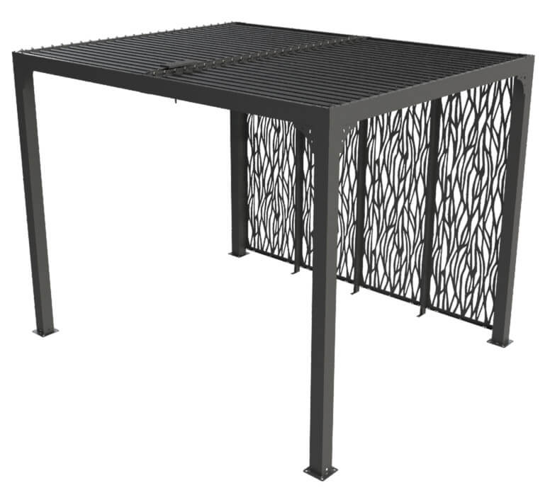- Revêtement : panneaux aluminium 90 mm, épaisseur 1 mm, coloris gris anthracite, orientable jusqu'à 90°