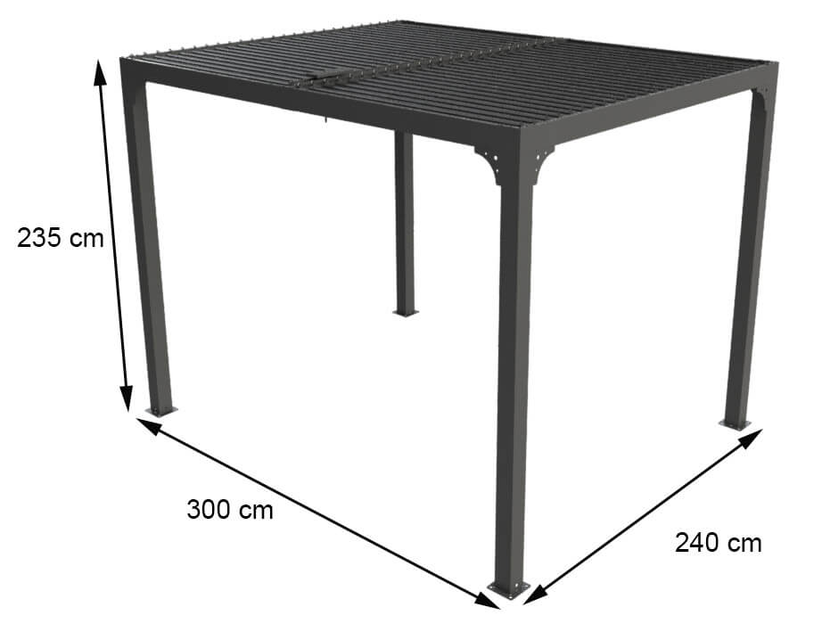 Pergola autoportée, composée de 4 montants robustes équipés de 2 pannes latérales et de 2 pannes frontales, surmontée de 52 lattes armées d'un système d'ouverture et de fermeture à manivelle. Ligne épurée, montants 10x10 cm, structure en aluminium thermolaqué, design soigné, offre une esthétique contemporaine qui se marie bien avec tout type de maison. La structure en aluminium, couplée aux pièces de joint et au mécanisme de positionnement en acier, ont été conçues pour résister aux aléas climatiques et aux changements saisonniers. Les dimensions de 2,4 x 3 mètres offrent un large choix d'installation au jardin, sur la terrasse, sur le balcon, au bord de la piscine, pour protéger un coin repas, un spa ou un spa des regards, plus simplement pour s'offrir un espace. Se détendre. Placé à côté de la baie vitrée d'un séjour, il permet, en fermant ses fentes, de réduire l'impact du soleil en l'ouvrant, de créer une ventilation naturelle, évitant l'effet de serre lors de fortes chaleurs et par l'ouverture totale de celles-ci pour gardez la lumière à l’intérieur de la pièce, surtout en hiver. Connu pour sa longévité et sa résistance aux intempéries, l'aluminium qui compose sa structure est le gage d'un investissement à long terme, allié à une garantie de 5 ans. Développée pour offrir une installation simple, grâce à sa notice détaillée et ses pièces numérotées, vous disposerez d'une pergola bioclimatique qui vous permettra de jouer avec les caprices du soleil, pour profiter d'une ambiance estivale relaxante au déjeuner.